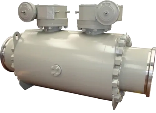 A trunnion-mounted ball valve engineered for subsea applications requiring remote operation and high external pressure resistance.